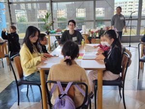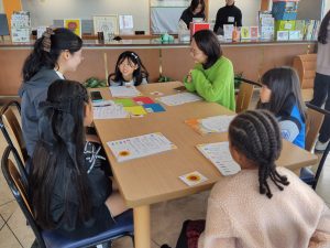 次に9名の留学生の方々の元へ自由に訪れて自己紹介をおこない、お子さま達は積極的に話しかけていました。