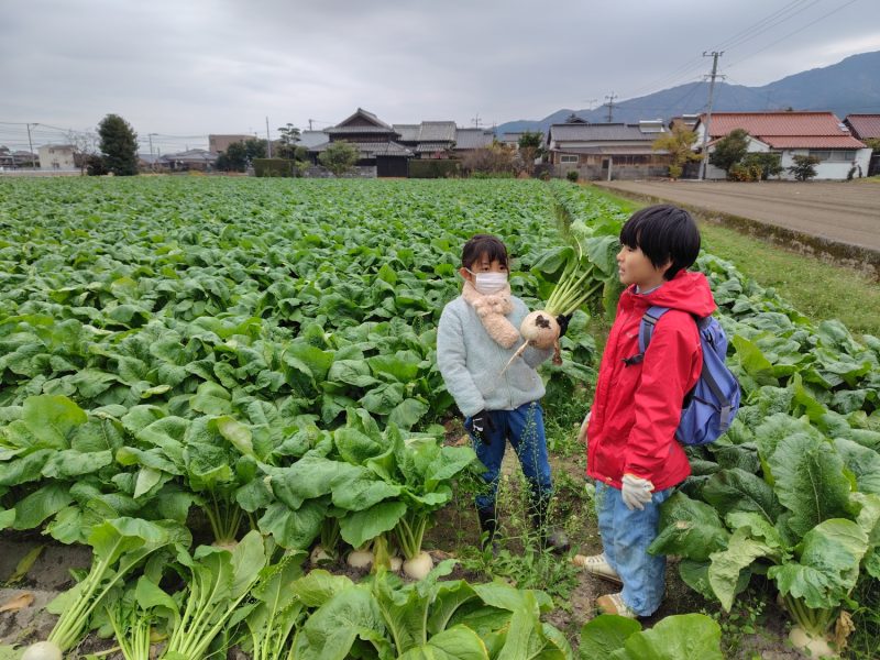 この日、朝からパラついていた雨が少し落ち着き、カブの収穫体験もさせていただきました。