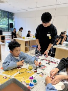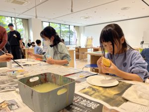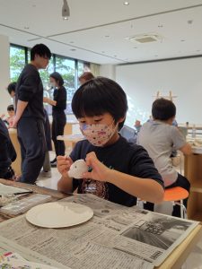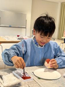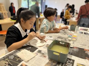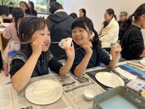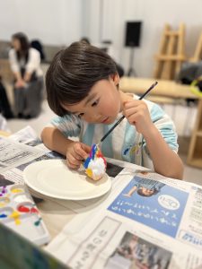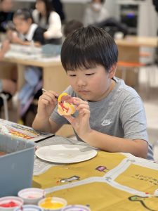 アドバイスを受けながら、自分で絵の具を選び、自由に絵付けをおこないました。