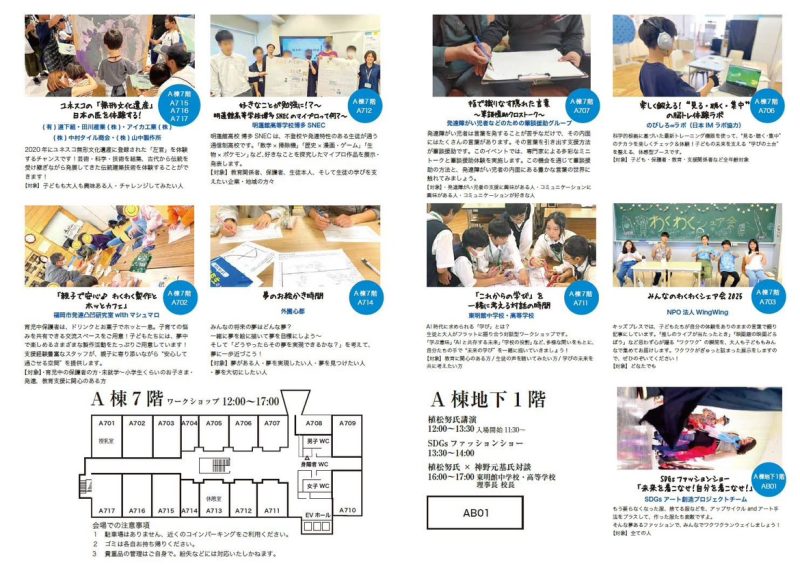 各団体のワークショップやファッションショーのほか、植松電機 植松社長の基調講演が予定されています。
