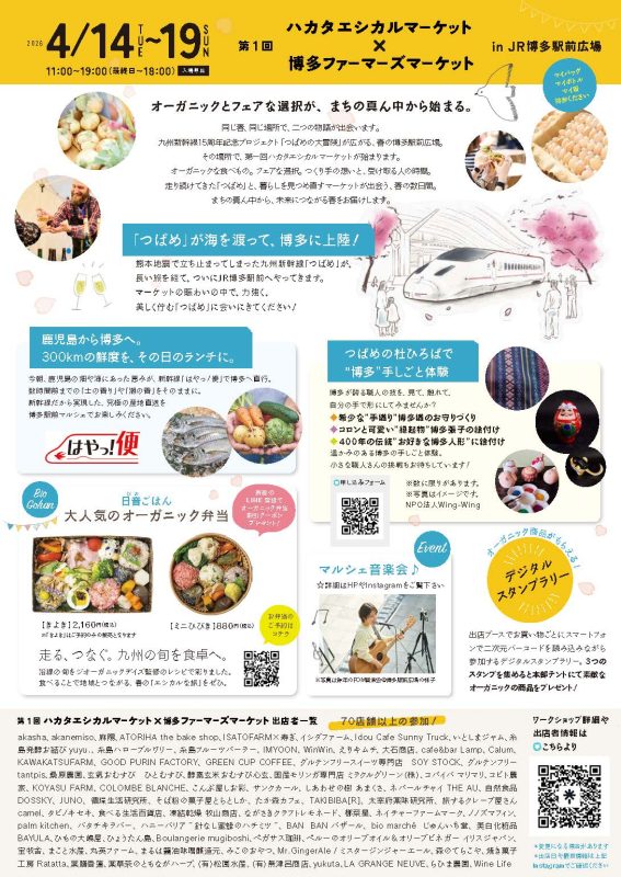 4月14日(火)~開催される「ハカタエシカルマーケット」×「博多ファーマーズマーケット」inJR博多駅前広場に参加します!